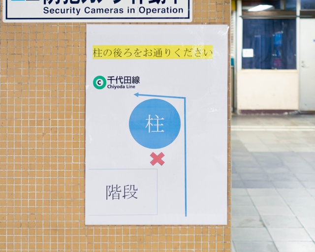 柱の右側を歩いて
