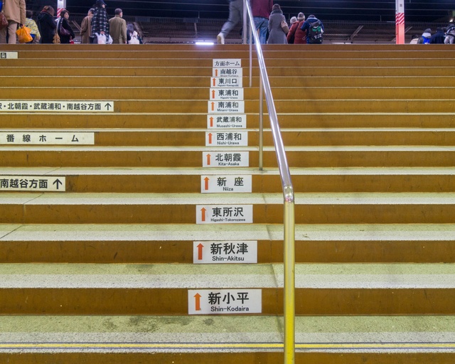 階段に駅名リスト