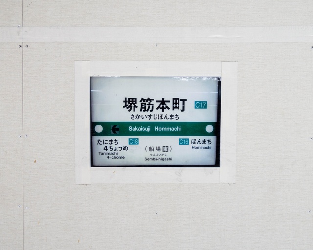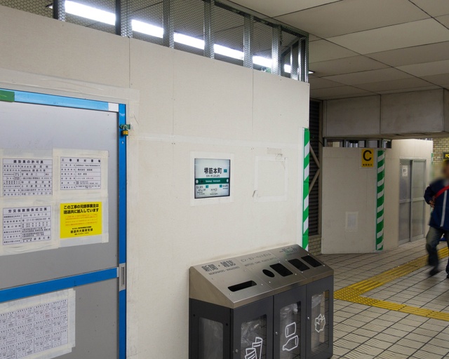 工事が始まる前、本来そこにあった駅名標を写真に撮って印刷したと思われるサイン。